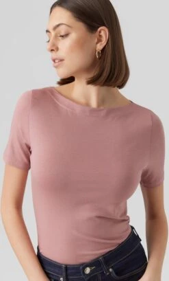 Vero Moda T-shirt Vmwide Stripe S/l Top Ga Jrs Noos 10284474 Goji Berry/snow Dames Maat – M