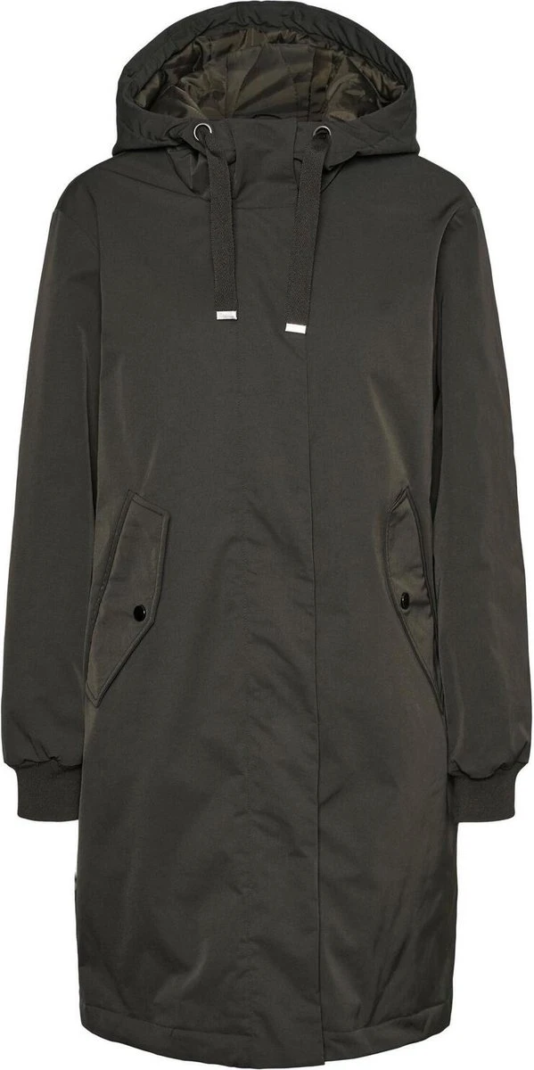 Zomerjas van Vero Moda. Dit model heeft lange mouwen met een ribgebreide boord en een vaste capuchon. De jas is voorzien van twee klepzakken die sluiten met een drukknoop. De jas sluit met een rits en drukknopen. Drogen aan de waslijn, Lauw strijken max 110°c, Machinewas 30°c fijne was, Niet bleken, Niet in de droger, Stomerij