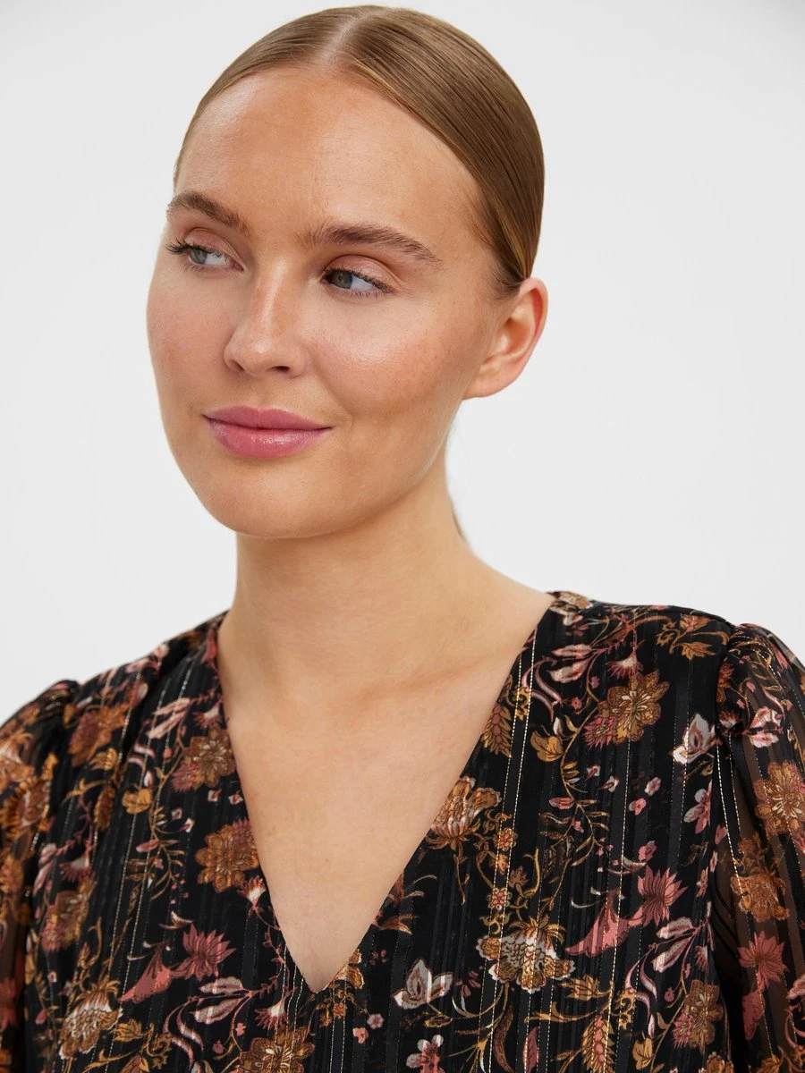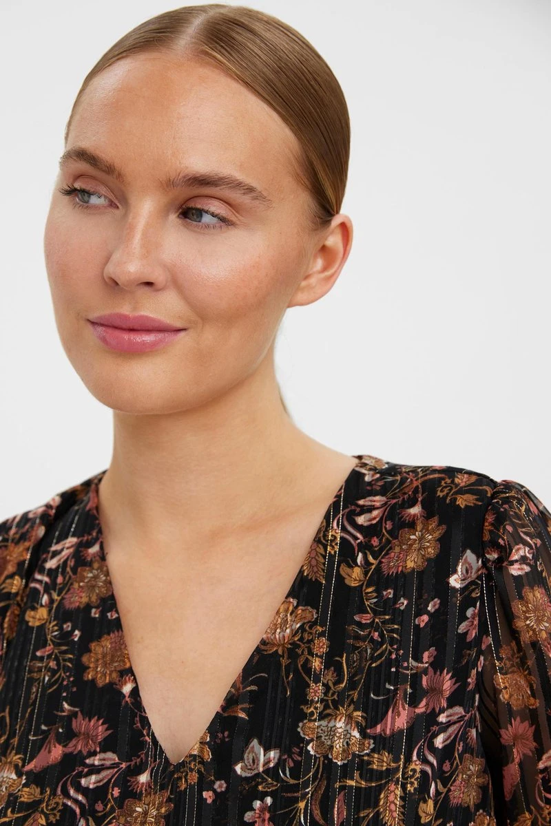 Blijf aan de top met een mooie feesttop! Van romantische en elegante tops tot casual versies. Onze selectie met feesttops heeft voor ieder wat wils. Met deze stijl transformeer je jouw casual outfit tot een feestlook – Type product : Blouse- Hals : V-Hals- Mouw lengte : Lange mouwen- Mouwen : Normale mouwen- Manchetten : Manchetten met knoop- Lengte : Normale lengte- Voering : Zachte, rekbare voering- Print : Folie print voor een glanzende look