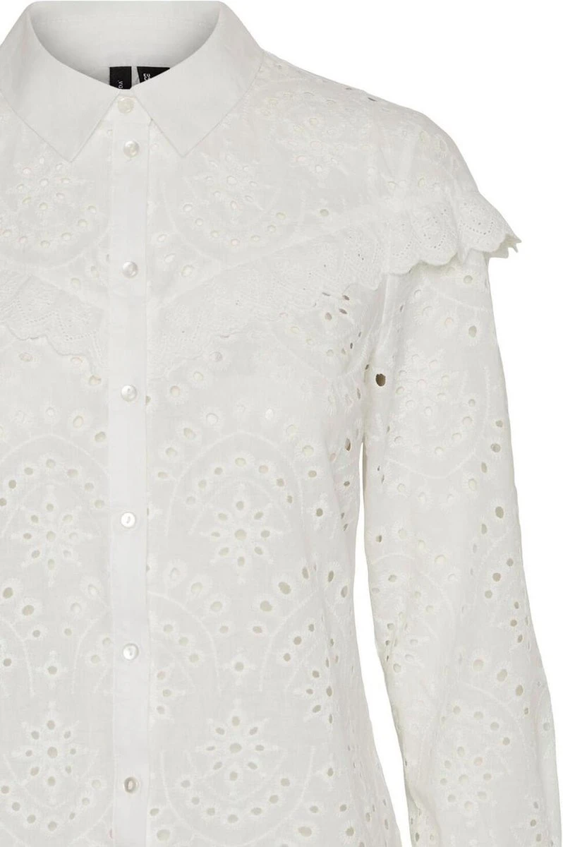 Deze prachtige blouse is gemakkelijk casual of netjes te stylen, afhankelijk van de gelegenheid, maar zal je outfit zeker een elegante touch geven. Combineer het met baggy jeans en hoge hakken voor de perfecte casual-chic look – Type product : Overhemd- Hals : Overhemd kraag- Mouw lengte : Lange mouwen- Mouwen : Normale mouwen- Manchetten : Hoge manchetten- Sluiting : Knoopsluiting aan de voorkant- Details : Geborduurd detail