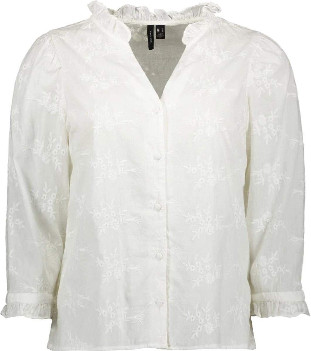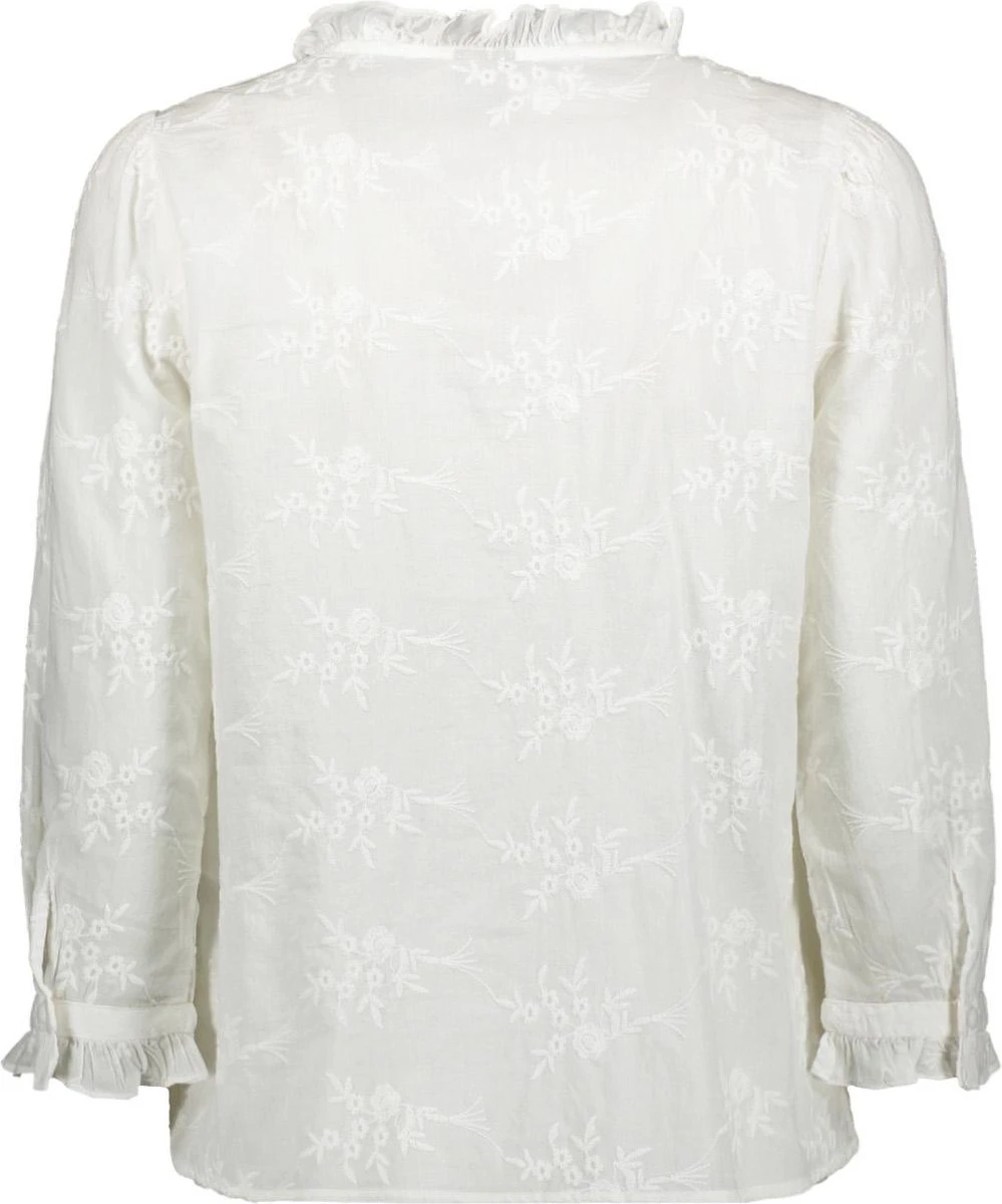 Deze prachtige blouse is gemakkelijk casual of netjes te stylen, afhankelijk van de gelegenheid, maar zal je outfit zeker een elegante touch geven. Combineer het met baggy jeans en hoge hakken voor de perfecte casual-chic look – Type product : Overhemd- Hals : Overhemd kraag- Mouw lengte : Lange mouwen- Mouwen : Normale mouwen- Manchetten : Mouwuiteinden met ruches- Sluiting : Knoopsluiting aan de voorkant- Lengte : Normaal- Details : Geborduurd detail, Ruches