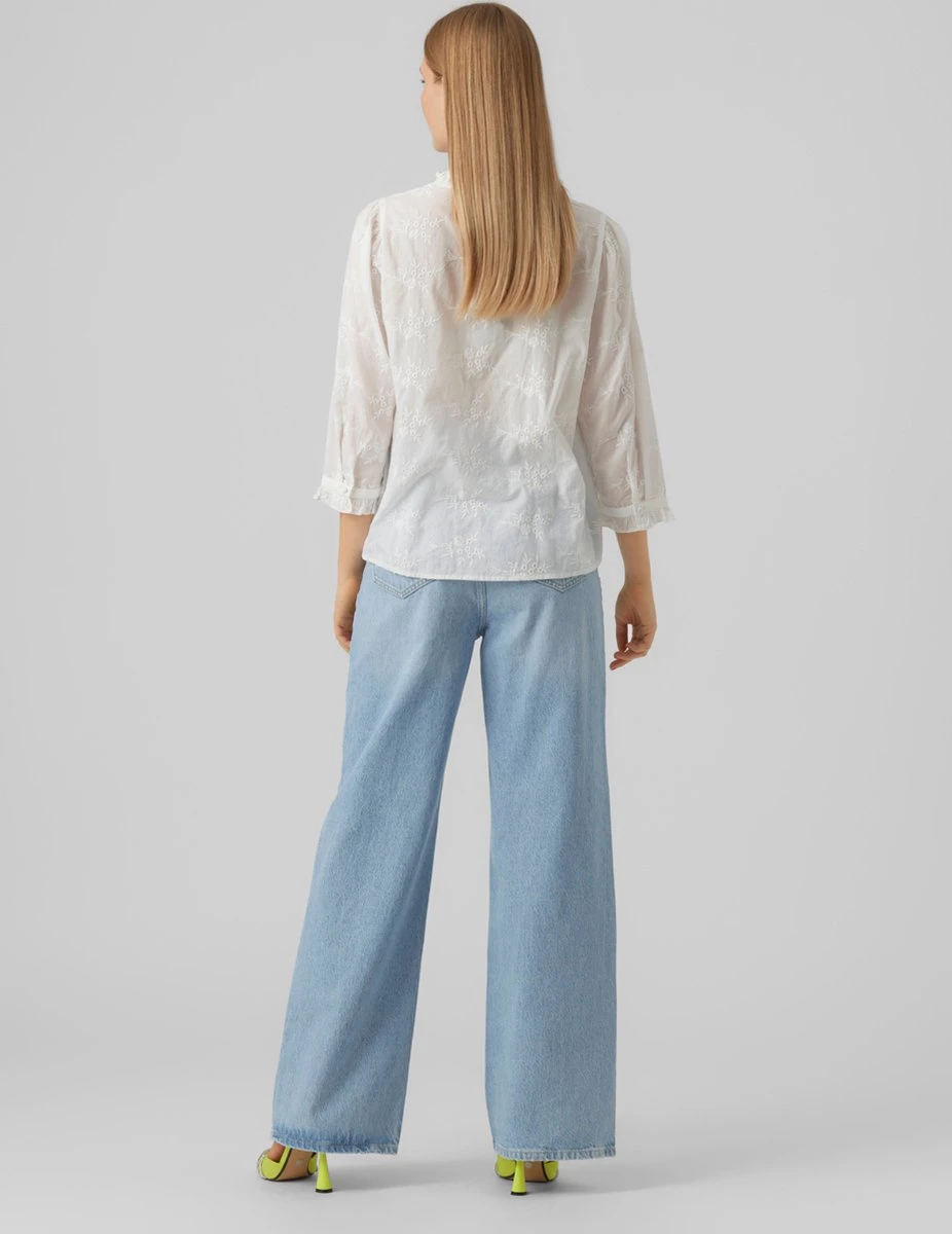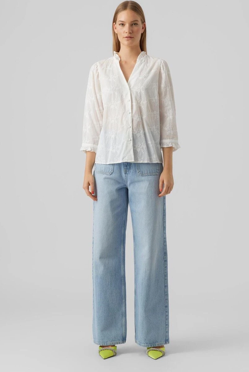 Deze prachtige blouse is gemakkelijk casual of netjes te stylen, afhankelijk van de gelegenheid, maar zal je outfit zeker een elegante touch geven. Combineer het met baggy jeans en hoge hakken voor de perfecte casual-chic look – Type product : Overhemd- Hals : Overhemd kraag- Mouw lengte : Lange mouwen- Mouwen : Normale mouwen- Manchetten : Mouwuiteinden met ruches- Sluiting : Knoopsluiting aan de voorkant- Lengte : Normaal- Details : Geborduurd detail, Ruches